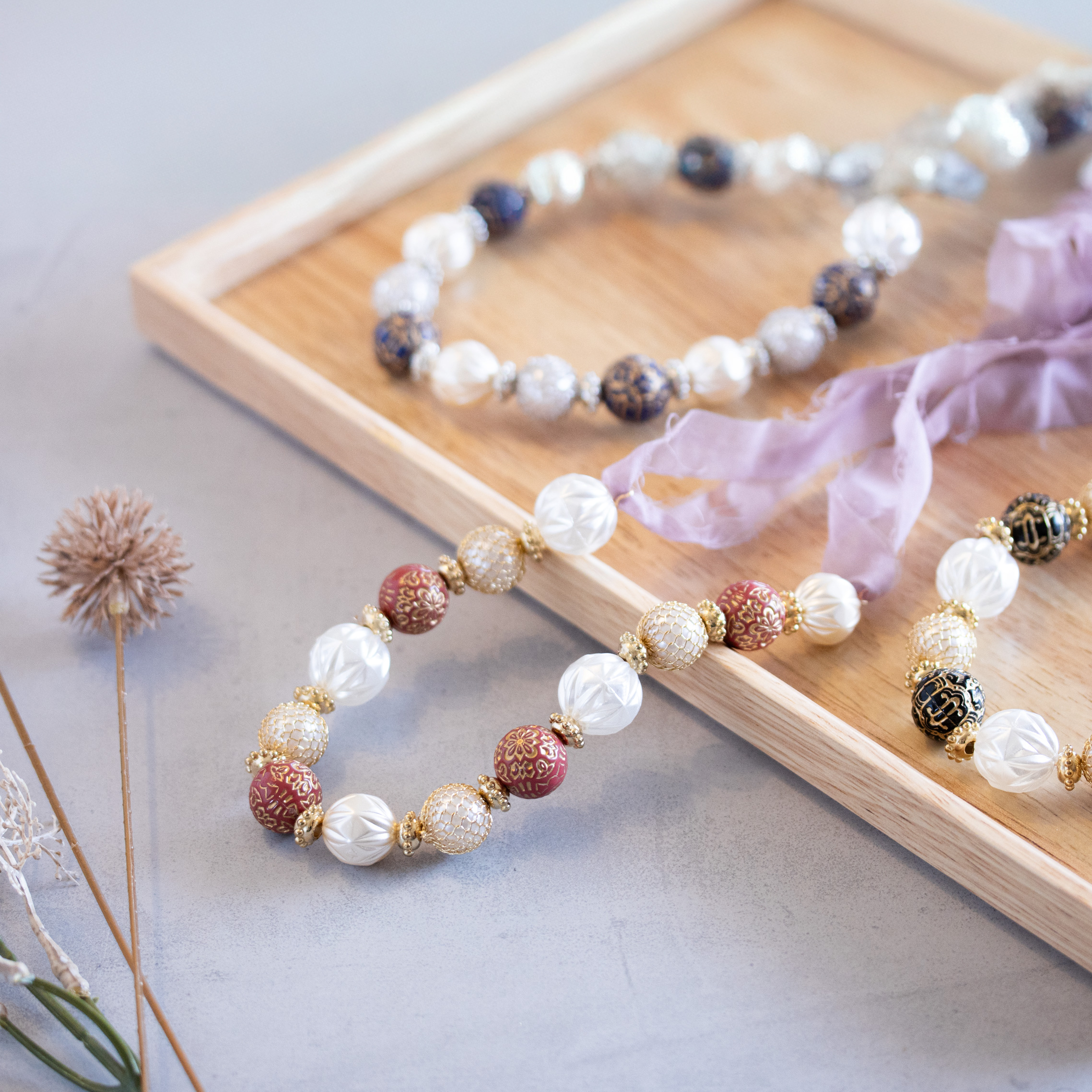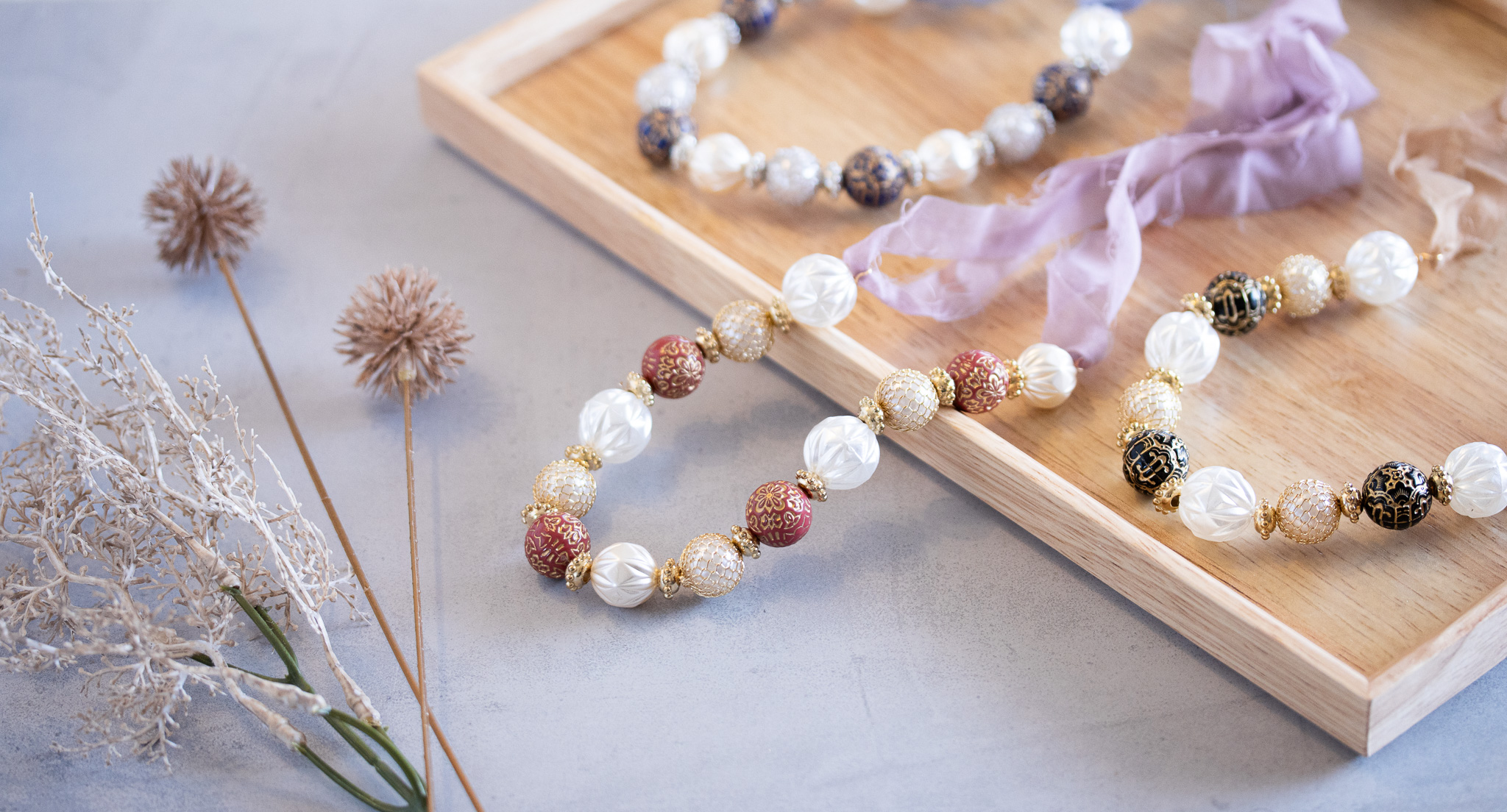 ビーズアクセサリーやハンドメイド作品の制作事例をご紹介。