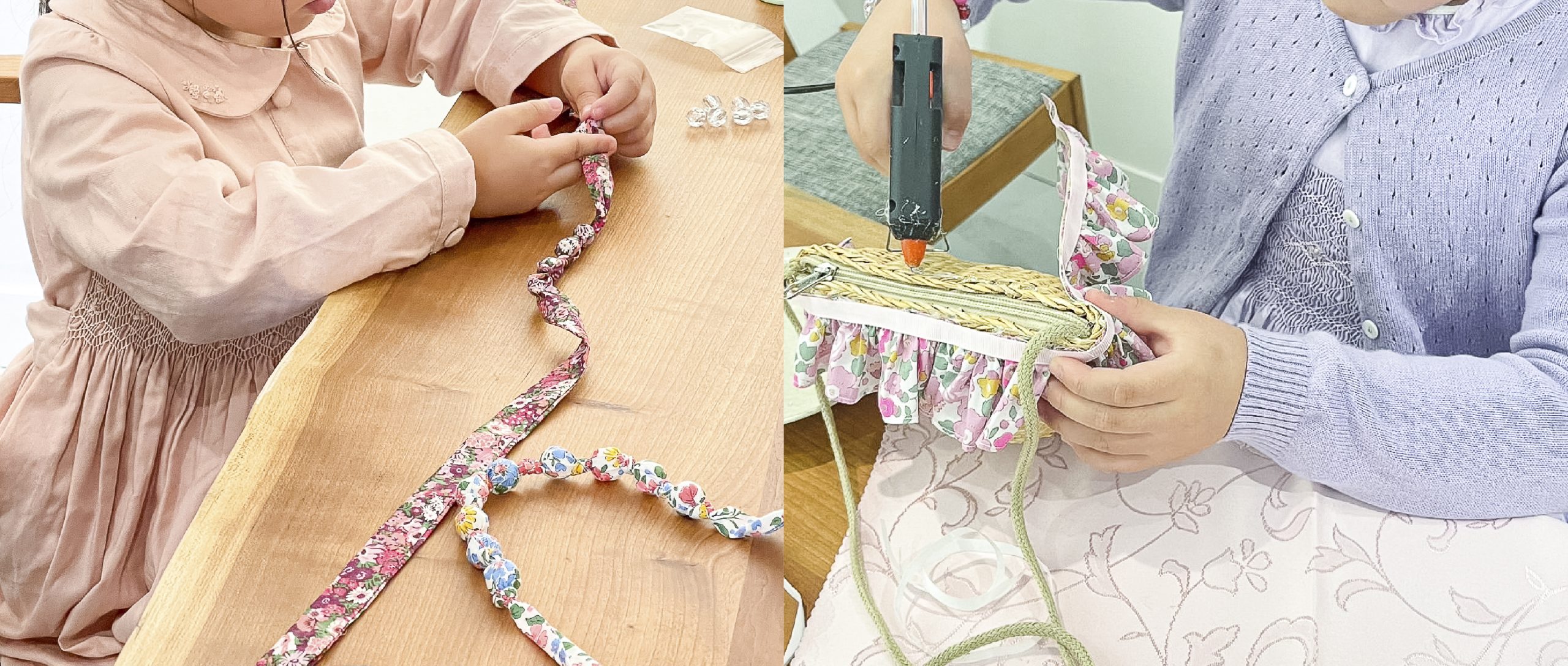 親御さんがすべてを準備するのは難しい中で、完成度の高い作品を求める声も多いと思います。そこで、ワークショップでは「お出かけにも使えるクオリティ」をコンセプトに、しっかりと準備したキットをご用意しています。お子さまが作った作品を実際に使っていただけるよう配慮しています。
