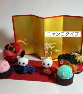 立体型は基本は内裏雛と桜、橘セット。オプションではまぐりと鞠が作れます。